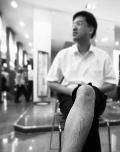 李先生腿上的傷清晰可見