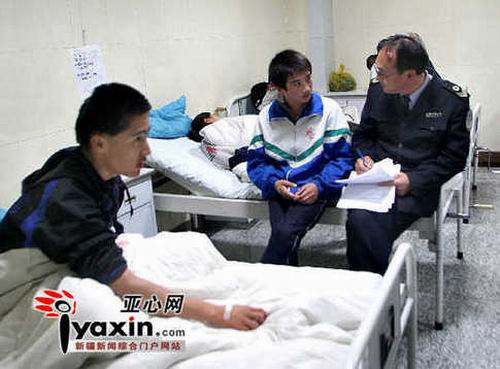 記者在病房?jī)?nèi),采訪學(xué)生出門時(shí),幾名男子機(jī)警的詢問(wèn)記者是干什么的,當(dāng)?shù)弥浾卟皇菍W(xué)校的學(xué)生后,立刻將病房門關(guān)了起來(lái),并拒絕記者再次進(jìn)入。