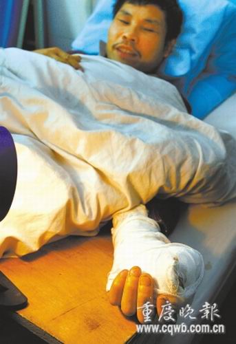 一家人歡歡喜喜殺肥豬過年,不料,被捅了一刀的大肥豬突然牢牢將殺豬人的手指咬在嘴里。前天(12月24日)下午,躺在病床上的渝北區(qū)農(nóng)民張?zhí)熨F哭笑不得,雖然手指已接回,但5000多元的醫(yī)療費(fèi)已遠(yuǎn)遠(yuǎn)超過宰殺年豬的價(jià)值。