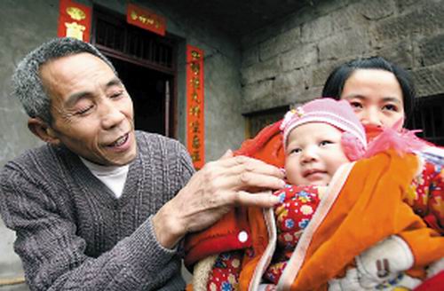 兒媳婦小梅抱著兩個月大的孫子星星(小名),走出房門。星星胖乎乎的,眼睛很亮,見著生人,“格格”笑起來。一旁的老杜也樂了,伸手逗起孫子來,一家人其樂融融。