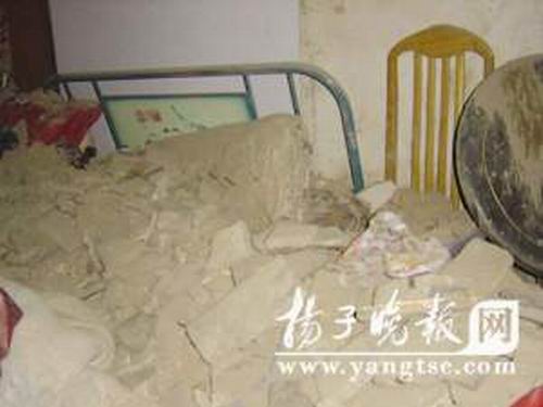 昨晨5點(diǎn)10分左右,南京秦淮區(qū)箍桶巷31號(hào)的一所民國(guó)建筑的墻壁突然坍塌,將正在床上睡覺的方大媽從頭埋到腳,但因?yàn)榉酱髬岊^部是朝著倒塌的墻壁方向,亂石沒有砸到頭,而且身上蓋著兩床厚厚的棉被,所幸身體并無大礙。