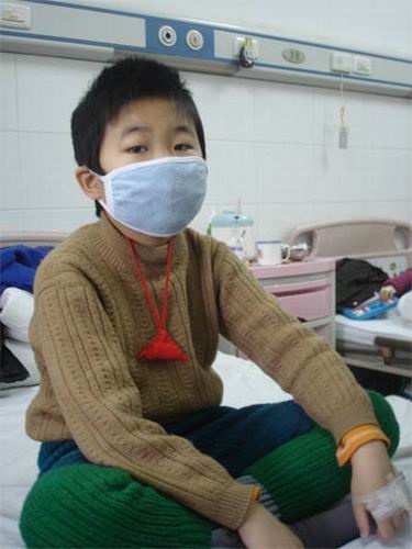 昨日下午3時(shí),記者進(jìn)入軒軒的病房,見(jiàn)有人來(lái),軒軒勉強(qiáng)地從病床上支撐著坐了起來(lái),一副口罩掛在孩子稚嫩的臉上,將整個(gè)面部遮擋了大半部分,只是一雙雖受病痛折磨依然眼光堅(jiān)毅的眼睛露在了外面。萬(wàn)玲告訴記者,這是因?yàn)榕录?xì)菌感染引起更糟糕的結(jié)果,所以遵醫(yī)囑戴起來(lái)的,每天只可以摘下一小會(huì)。小宇軒看到記者并沒(méi)有顯出害怕,但是虛弱的表情已經(jīng)寫在了臉上,孩子的身上開(kāi)始出現(xiàn)很多的血印。一雙原來(lái)白嫩的小手已清晰可見(jiàn)蠟黃色了,手背上則是剛扎完針包著的紗布。