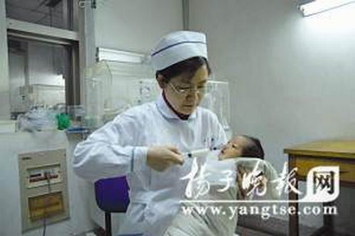 4日上午,記者來到儀征市人民醫(yī)院婦產科,只見朱汝成護士長正在用針管小心翼翼地給“小牛娃”喂奶。由于小家伙鼻腔和口腔相通,不能自己喝奶,每次只能用針管,還要小心謹慎,生怕嗆著孩子。記者注意到,“小牛娃”用依戀的眼神看著護士長,朱護士長說,每次看見小孩子的眼神,心里特別難過,自己也是母親,知道這么個小生命實在太脆弱了。現在自己照顧他,就把他當成自己的孩子,孩子是無辜的,他也是一個小生命。“小牛娃”吃完奶后,朱護士長又把他放進幼兒床里,因為怕小家伙著涼,辦公室的空調始終開著,從正月初三起,婦產科全體醫(yī)護人員輪流照顧孩子,并給孩子購買奶粉、衣服、尿不濕等必需品。