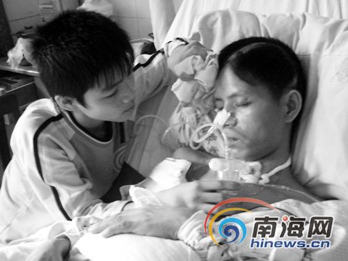 “其實(shí)當(dāng)時(shí)醫(yī)生也勸過(guò)我們放棄,但是只要還有一線生機(jī),我們還是想試一試!痹诟赣H昏迷時(shí),小鋒每天趴在父親的耳邊,和父親說(shuō)話!拔颐职值哪槪紱](méi)反應(yīng),甚至掐他的手,他也沒(méi)喊痛,我急了就喊。”于是,每天同病房的病友總能聽見一位少年在呼喊:“爸爸,爸爸,你醒來(lái)吧,小鋒在這里,你睜開眼睛,看看我吧!我以前不聽話,只要你醒來(lái),我以后都聽你的,好好讀書!敝钡胶韲邓粏×,小鋒的眼睛也哭腫了,也沒(méi)見父親醒來(lái)。一天又一天,小鋒一次又一次失望了。