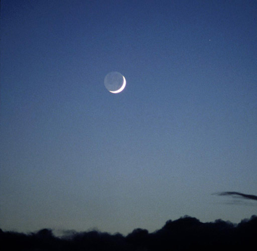 月球位于日、地之間時(shí)稱之為“朔”,月球暗的半個(gè)球朝向地球,我們看不到它;朔之后的一、二天,鐮刀狀的新月從西方的天空中出現(xiàn),當(dāng)月球呈鐮刀狀出現(xiàn)在天邊的時(shí)候,我們能看到月球圓面的其余部分顯現(xiàn)微弱的光輝。這種光輝來自地球反射的太陽光,稱為“灰光”。地球能把入射陽光的40%反射出去,比月球反射光線的“能力”高得多,從而可以照亮月球,產(chǎn)生“灰光”。