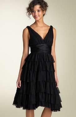 Maggy London 層疊皺褶小黑裙(腰部軟綢緞)