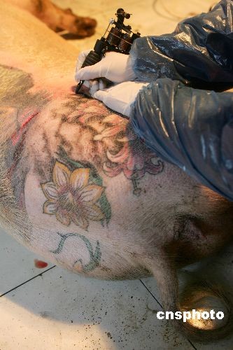 11月4日,記者前往比利時(shí)藝術(shù)家威姆德沃伊(Wim Delvoye)在北京郊區(qū)的“藝術(shù)農(nóng)場(chǎng)”,他在農(nóng)場(chǎng)里養(yǎng)的十幾頭豬只只價(jià)值連城,因?yàn)檫@些豬身上都被紋上包括世界知名品牌LV,或者人物、動(dòng)物、神話故事等卡通風(fēng)格圖案。這些紋身豬皮最高可賣到100萬(wàn)元,因此這些紋身豬吃好喝好,過(guò)得比人還舒服。中新社發(fā) 富田 攝