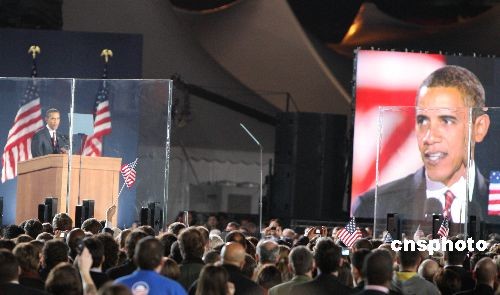 美國民主黨總統(tǒng)候選人奧巴馬當?shù)貢r間11月4日贏得美國大選,將成為美國歷史上第一位黑人總統(tǒng)。中新社發(fā) 李靜 攝