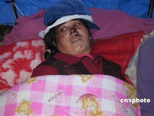 圖為村民王光蘭在被埋五個(gè)多小時(shí)被村干部救出,被醫(yī)護(hù)人員治療后在救災(zāi)帳篷中休息。中新社發(fā) 劉子倩 攝