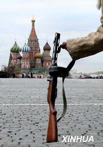 11月7日,俄羅斯士兵身著二戰(zhàn)時期樣式的軍裝在莫斯科紅場參加閱兵儀式,紀念1941年11月7日的紅場閱兵式舉行67周年。1941年11月7日,在德國法西斯軍隊兵臨莫斯科城下之際,蘇聯(lián)軍隊在紅場上舉行了閱兵式,紀念十月革命24周年。參加閱兵式的部隊在閱兵完畢后直接開赴前線同入侵的法西斯德軍作戰(zhàn)。新華社記者 沈伯韓攝