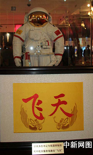 胡錦濤為“神七”艙外航天服題詞“飛天”。