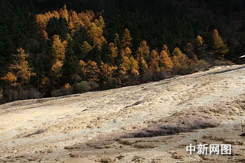 黃龍溝幾乎全被乳黃色的碳酸鈣質(zhì)覆蓋