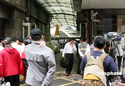 圖為陳水扁進入特偵組后,大批警方在現(xiàn)場戒備,而陳水扁的車隊則由側門進入特偵組。