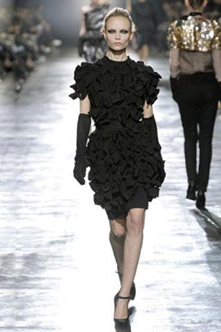 對(duì)經(jīng)典“小黑裙”的挑戰(zhàn),一直是設(shè)計(jì)師修行道路上的必修課,Lanvin這條裙子的款式是再經(jīng)典不過的基本款,卻因大量如蝴蝶花瓣般的裝飾物而變的豐富起來。