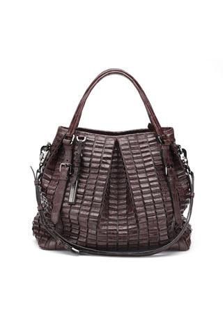 深棕暖調(diào)讓鱷魚皮的野性收斂了不少,再把這樣堅硬的皮革整齊排列與褶皺處理,包身擁有了堆疊體積感,就像是竹節(jié)被串連在了一起一般擁有雕刻的肌理質(zhì)感。