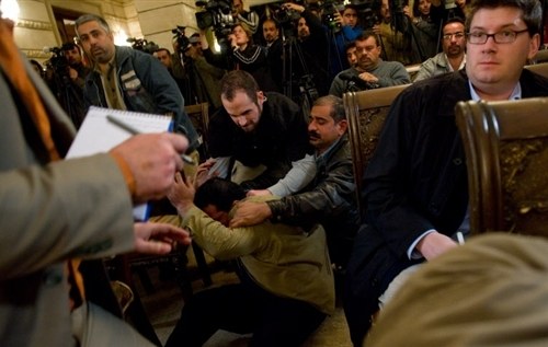 布什突訪伊拉克 遭憤怒記者臭鞋襲擊(2)