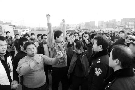 雙方發(fā)生第二次撕扯。眼看兩名勸解的民警被淹沒(méi)在人群中,立即過(guò)來(lái)五六名民警才將雙方隔開(kāi)。