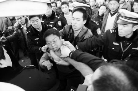 民警請(qǐng)他們自己上警車無(wú)效,遂采取強(qiáng)制措施。