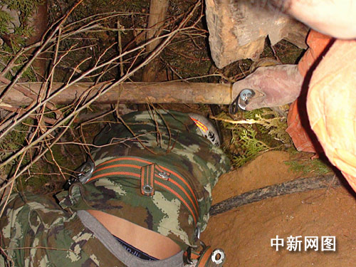 另一名被困人員身體被完全埋住,頭部被一塊巨石壓著,經(jīng)驗(yàn)豐富的中隊(duì)指揮員經(jīng)過仔細(xì)觀察發(fā)現(xiàn),傷者的頭部被一塊巨石壓著,值得慶幸的是,這塊巨石被散落的小石塊支撐著,傷者的頭部雖然被卡在那里,但是沒有直接被巨石砸到。戰(zhàn)士劉闖找到一個(gè)有利位置,對(duì)傷者進(jìn)行石塊清理,一邊與傷者講話,分散傷者注意力,減輕傷者痛苦!稗Z隆……”又是一陣坍塌,中隊(duì)指揮員徐占杰躲閃不及被砸落的石塊,砸傷了腳。