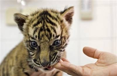 中新網(wǎng)2月26日電 以色列耶路撒冷動(dòng)物園里的一只蘇門答臘虎,兩個(gè)月前生了兩只小老虎,沒(méi)想到母老虎不但不管小老虎,還差點(diǎn)吃掉它們,最后只有一只小老虎成功活下來(lái)。動(dòng)物園獸醫(yī)無(wú)計(jì)可施,最后只好把小老虎帶回家養(yǎng),暫時(shí)充當(dāng)起虎保姆。
