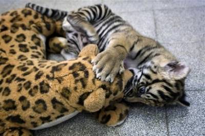 據(jù)臺(tái)灣東森新聞網(wǎng)報(bào)道,活蹦亂跳的小老虎不但會(huì)和小孩一起玩,還會(huì)把玩具豹玩得不亦樂(lè)乎。不過(guò),可別看它一副自得其樂(lè)的樣子,其實(shí)小老虎有著非?蓱z的身世,因?yàn)槌錾攀斓乃,就不幸地被自己的親生母親拋棄。