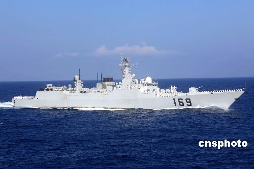 4月26日上午,南中國(guó)海陽(yáng)光明媚,夜間一場(chǎng)大雨為中國(guó)海軍首批護(hù)航編隊(duì)駛?cè)胱鎳?guó)傳統(tǒng)疆域線洗去征塵。首批護(hù)航編隊(duì)在南中國(guó)海隆重舉行“向祖國(guó)報(bào)告”儀式。圖為“武漢”號(hào)導(dǎo)彈驅(qū)逐艦護(hù)航官兵在甲板上整齊列隊(duì),向祖國(guó)敬禮。中新社發(fā) 孫自法 攝