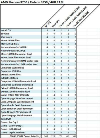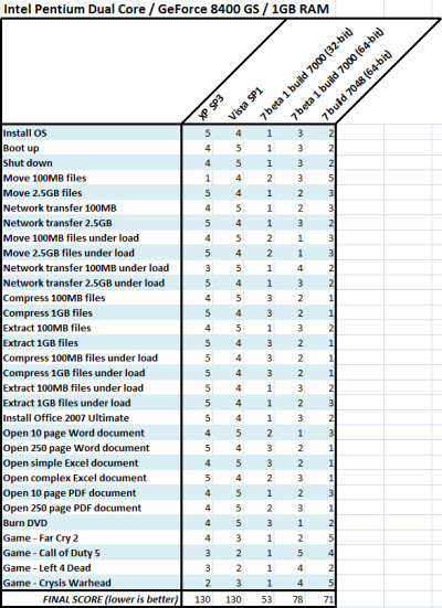 當(dāng)然值得一提的是,Windows 7的評測是Beta版本,而Vista和WinXP已經(jīng)完善的升級至SP1或SP3。
