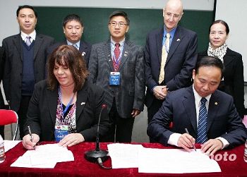 12月7日,美國圣地亞哥河景小學(xué)和福州實(shí)驗(yàn)小學(xué)在福州簽訂了建立姐妹學(xué)校意向書。當(dāng)日,中美中小學(xué)校長(zhǎng)座談會(huì)在榕舉辦,美國33名中小學(xué)代表與福州近20所中小學(xué)校長(zhǎng)及教師代表進(jìn)行了廣泛深入的交流,共同探討漢語教學(xué)與中國文化交流以及在美國中小學(xué)開設(shè)孔子課堂及派遣赴美漢語教學(xué)志愿者等項(xiàng)目合作意向。(中新社/張麗君 攝)