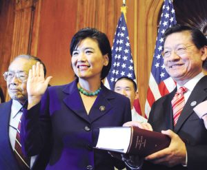 在洛杉磯地區(qū)政壇活躍了24年的趙美心(Judy Chu)2009年7月14日晚,在加州聯(lián)邦第32選區(qū)的特別選舉中勝出,當選美國首位華裔女國會議員,締造了歷史。在國會參眾兩院五百多位議員中,趙美心是繼吳振偉之后的第二位華裔國會議員,也是美國建國兩百多年來首位華裔女聯(lián)邦議員。