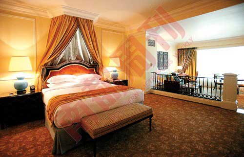 我上次住的是酒店南翼套房,據(jù)說威尼斯人的三千間豪華客房每間的面積都不小于60平方米,是那種躍式風(fēng)格,也就是客廳和寢室的區(qū)域劃分非常清楚。
