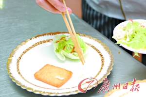 6. 用包心菜剪成小圓兜并放上配菜(或沙拉),然后把“翅蝦”放在烤過的面包片上即可。 (文/吳婉虹 圖/司徒。
