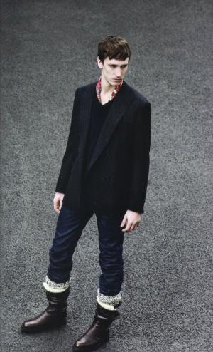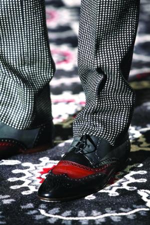 休閑西裝配隨性牛仔褲,頸間隱約露出一小段彩色方巾,這樣的男人已經(jīng)會令女人多看他一眼;如果他腳上蹬著的那雙中幫皮靴里不經(jīng)意地露出一截彩色毛線褲襪,那一定會引來探究的目光。這是今年秋冬大牌男裝設計師推出的最酷的“童趣”裝扮,讓男人借著孩提時代一雙彩色毛線褲襪回味童年時光,也算是一種心靈瑜珈吧。