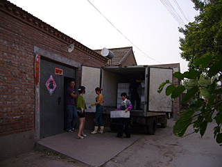 晚上六點(diǎn)鐘,趙梅(化名)準(zhǔn)時(shí)來到了位于通州區(qū)臺湖鎮(zhèn)田府村373號,一輛中型貨車緩緩駛?cè)肓诉@座民房旁邊的車庫,隨著后車廂門的打開,她和其他8個(gè)工人熟練搬起裝滿使用過的“餐具”的箱子,從原本緊閉的大門里進(jìn)去。