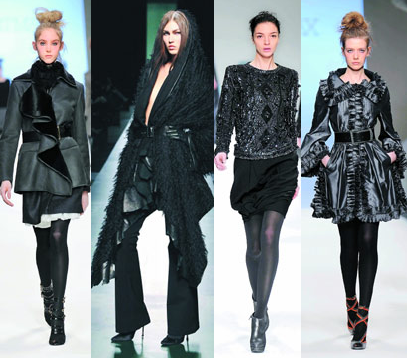 今年秋冬黑色革新趨勢(shì)是采用微妙差別的黑與黑的組合。也就是說(shuō)采用一些肌理與光澤的變化,采用皮草、羽毛、絲絨、緞面等不同質(zhì)感的黑色面料的拼接,以及閃石、亮片等鑲嵌,用不同面料、不同黑色、不同光影對(duì)比來(lái)玩搭配的游戲。