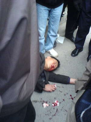 昨日下午3點(diǎn)40分,任先生一家三口在黃浦區(qū)城隍廟附近逛街時(shí),因一位女店主質(zhì)疑任先生損壞了店中的一只暖瓶,爭辯中,任先生遭店主用鋼制暖瓶猛砸面部,血流滿面倒地昏迷不醒。