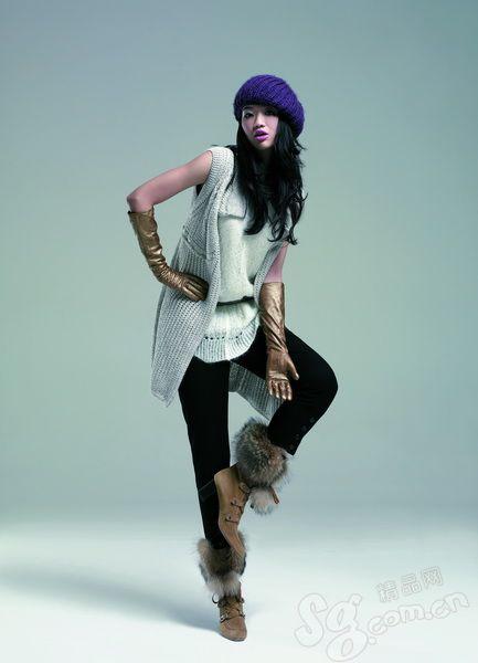 誰說針織衫不能套穿?被細(xì)腰帶束住的白色吊帶長上衣搭配黑色七分褲,在柔與剛中取得平衡,再穿上無袖的針織外套,以多層次的搭配方式帶來滿溢的街頭味。若害怕過于單薄,除了可加上外套外,毛皮飾邊的短靴與金色長手套都是能夠填補空白的最佳飾品,與斜帶的紫色毛線帽刻意的撞色,卻在黑白色的服裝映襯下達(dá)成共識。