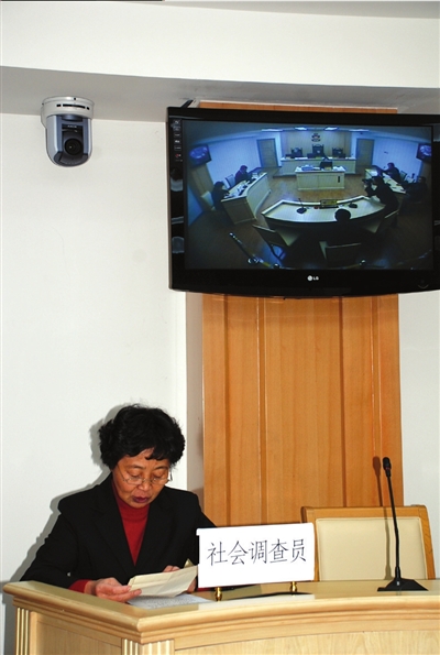 社會調(diào)查員上庭宣讀調(diào)查報告。 李力攝