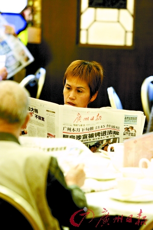 “早茶”歷來(lái)都是廣州市民一起交流信息的平臺(tái)。每天到文昌路廣州酒家喝茶的施老伯,一桌子人都是喝了十年以上的茶友。施老伯起得早,每天六七時(shí)就會(huì)先來(lái)霸位,然后那些三四十歲的“茶友”就會(huì)陸續(xù)趕到,他們一邊看報(bào)紙,一邊交流心得,不管大事小事都要評(píng)頭論足一番,“這種方式真的很好,”施老伯說(shuō)。