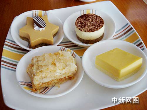 (四)正統(tǒng)的英式下午茶的點(diǎn)心是用三層點(diǎn)心瓷盤裝盛,第一層放三明治、第二層放傳統(tǒng)英式點(diǎn)心Scone、第三層則放蛋糕及水果塔;由下往上開回吃。至于Scone的吃法是先涂果醬、再涂奶油,吃完一口、再涂下一口。