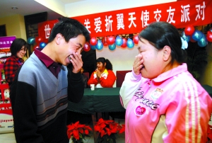 “如果感到幸福你就拍拍手。”31歲的盲人鋼琴調(diào)音師小陸羞澀地伸出手,與聾啞小伙郭川的手輕輕地握在一起。昨日,50余位殘疾人在勞動人民文化宮,集體相親。被稱為“袖珍公主”的吳小莉也前來相親。最后,她將寫著個(gè)人信息的紙條交給身高1.7米的陳先生。