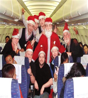 今天就是西方的“平安夜”了,昨天上午,在成都飛往上海的3U8961航班上,全體機組成員戴上了圣誕帽,和旅客們一起猜謎,進(jìn)行有獎問答(右圖)。機上7名來自美國的旅客還和乘務(wù)員們一起唱起了圣誕歌,乘客們提前感受了一把圣誕平安夜的熱鬧。
