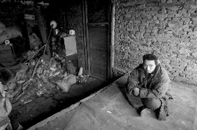 金福榮家在姚家屯的最南面,兩間舊瓦房內(nèi)每晚要擠6口人,其中一間15平方米左右的屋內(nèi)住著金福榮的父母、妹妹、妹夫和外甥,另外一間同樣大小的房子金福榮自己住了近16年。