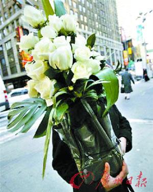 情人節(jié)來臨之際,美國街頭的商販正兜售白玫瑰花!