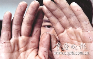 昨日,記者細(xì)數(shù)小志雙手傷口,多達(dá)26道,遍及手掌、手背和手指,最長的有四五厘米。