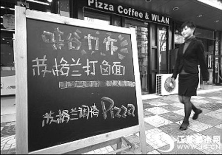 偶然在成賢街一家西餐廳門口看到,木制廣告牌上寫著醒目的“蘇格蘭打鹵面、蘇格蘭調(diào)情pizza”。餐廳老板稱,“蘇格蘭打鹵面”是年后新推出的餐品,78元一份,選材多為進(jìn)口原料,總有一樣和蘇格蘭有關(guān)。至于鹵子要不要錢,這事老板保密,他拍胸脯保證,這面鹵不咸。