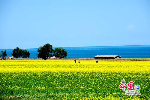 站在日月亭兩山間的路上,便可眺見(jiàn)青海湖,湛藍(lán)的粼粼波光和湖岸邊,一望無(wú)際綿綿起伏不盡的草場(chǎng)。轉(zhuǎn)瞬之間來(lái)到青海湖,這里,水映天色,微風(fēng)清揚(yáng),湖水碧藍(lán),黃鴨、鸕鶿群群。各色水鳥(niǎo),拍翅翻飛,戲水鳴唱。