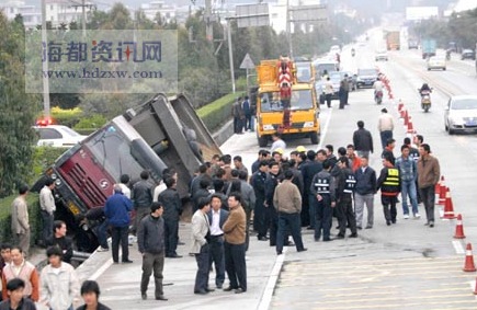 “太慘了……”一名目擊者向記者描述,盡管事情過去了一兩個小時,但他還是心有余悸。他說,事發(fā)時正是附近嶺腳中學的放學時間,這輛滿載沙子的貨車從國道飛速駛來,先是與一輛客車側面擦了一下,接著車子就失控了,繼續(xù)往路邊奔去。一名依姆騎著三輪車載著一車孩子沒能避開,眼睜睜被卷入車輪當中。車上一個十來歲的女孩當場身亡,騎車依姆雙腳被當場軋斷,而另一名女孩摔在地上動彈不得。但直到這時,車子還是沒能剎住,徑直沖向路邊,直到卡死在排水溝里,而三輪車就被運沙車連推帶卷一直沒能離開車底。