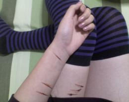 在這篇帖子里,一個十六、七歲模樣的年輕女孩自稱出生于1992年,因為剛與男友分手,希望能以死解脫,但又由于怕痛,所以幾次下手都未能達(dá)到目的,所以才把自己自殺的圖片以“直播”的方式貼出來,希望得到網(wǎng)友的鼓勵,以便她能夠最終“成功”。這個女孩在帖子里還寫了一段自殺過程中自己的心理變化:“站在光亮的玻璃鏡前,看著紅色液體再次從身體中流出,突然有種昏眩的感覺,品嘗著那苦澀的血腥味,直至無法觀看下去……”如此血腥的文字,讓人看了不寒而栗。