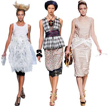2009春夏,圍裙終于擺脫了“廚房里的必需品”的命運,有幸站上了時尚的T臺,想必十分榮耀。它決心雪洗從前油跡斑斑的污濁形象,走出廚房?纯碝arc Jacobs和Prada裙子上的腰部圍裙點綴,是為了凸顯迷人腰部線條,而非烹飪需要。