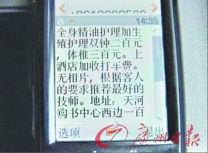 如果到會(huì)所里消費(fèi)的話,除普通按摩收費(fèi)外,如果有進(jìn)一步需求,還需要另外加錢。小全上門“服務(wù)”一次收費(fèi)數(shù)百元,這其中老板要提成一半左右,生意好的時(shí)候“技師”一個(gè)月可以有上萬(wàn)元收入,不好的時(shí)候也有溫飽。談了十幾分鐘后,小全見(jiàn)我們沒(méi)有動(dòng)靜就有點(diǎn)急了,記者這時(shí)找了一個(gè)借口,說(shuō)有急事要借顧離開(kāi)。